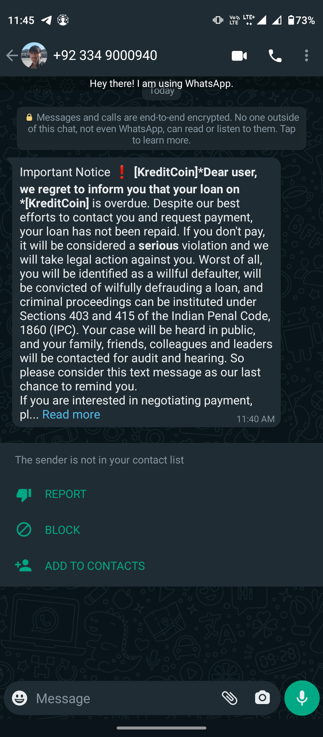I didnot take loan from kredit coin .but he send me a msg that time was reached and of i m not pay that he will be take action against me .but i m not taking loan from kredit coin in past