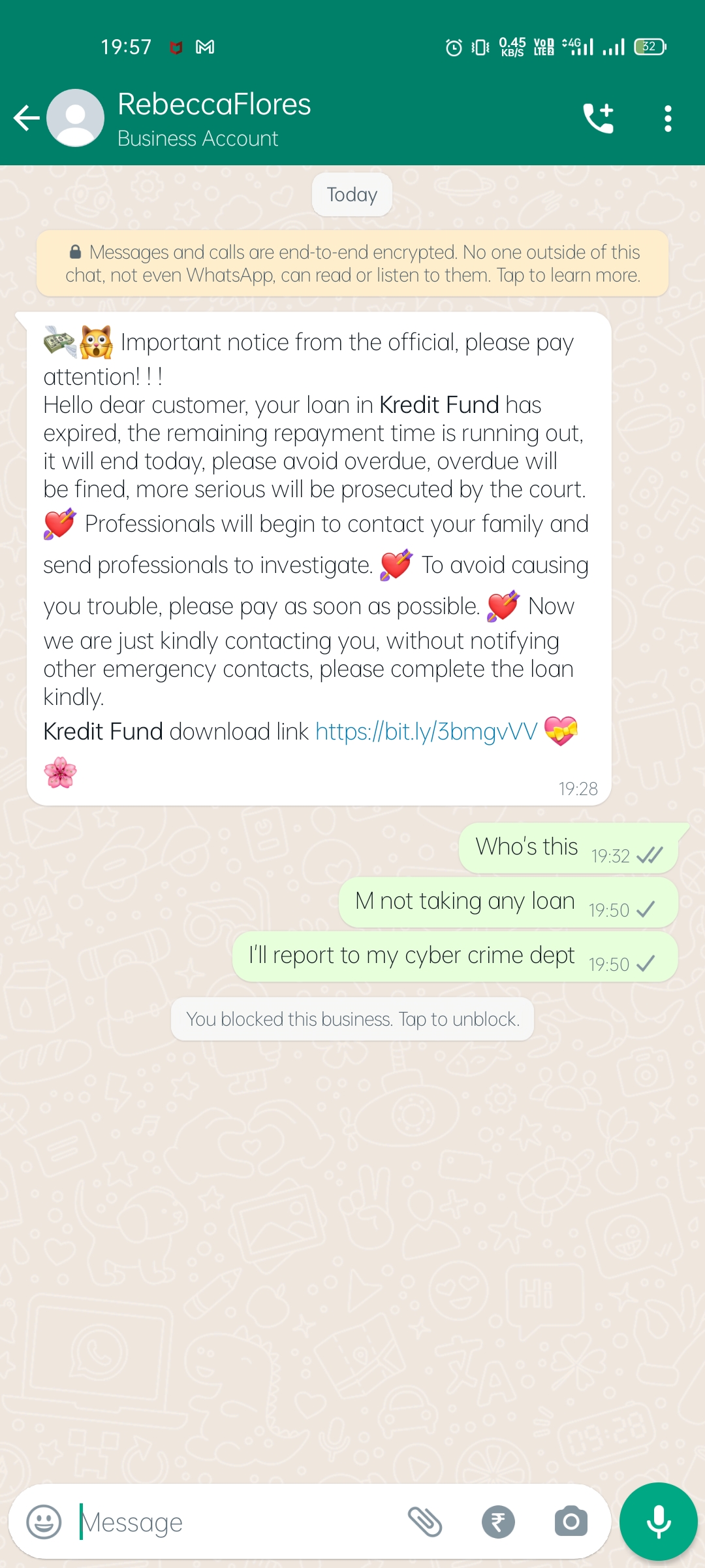 I don’t take loan from this app but they are sending me threatening messages without any reason company name is kredit fund amd the message me to take action against me