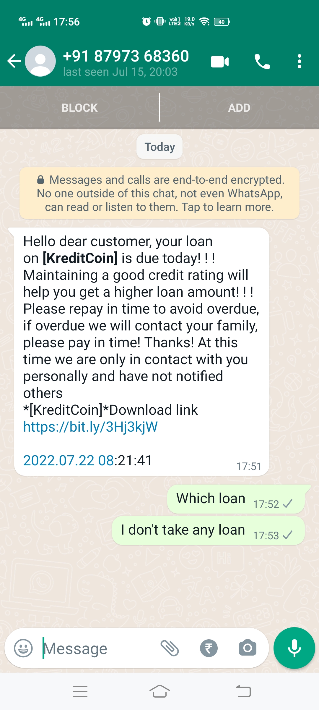 Sir I have not taken any loan from kreditcoin they are hareessing me to do payment of 5665.