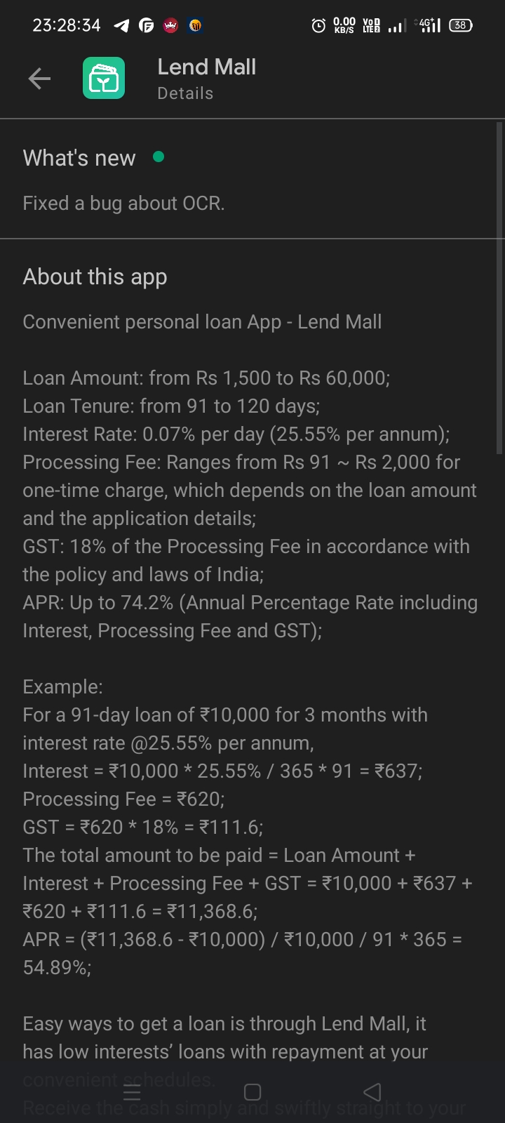 They show tenure 91 days but they provide 7 days only with lots of interest