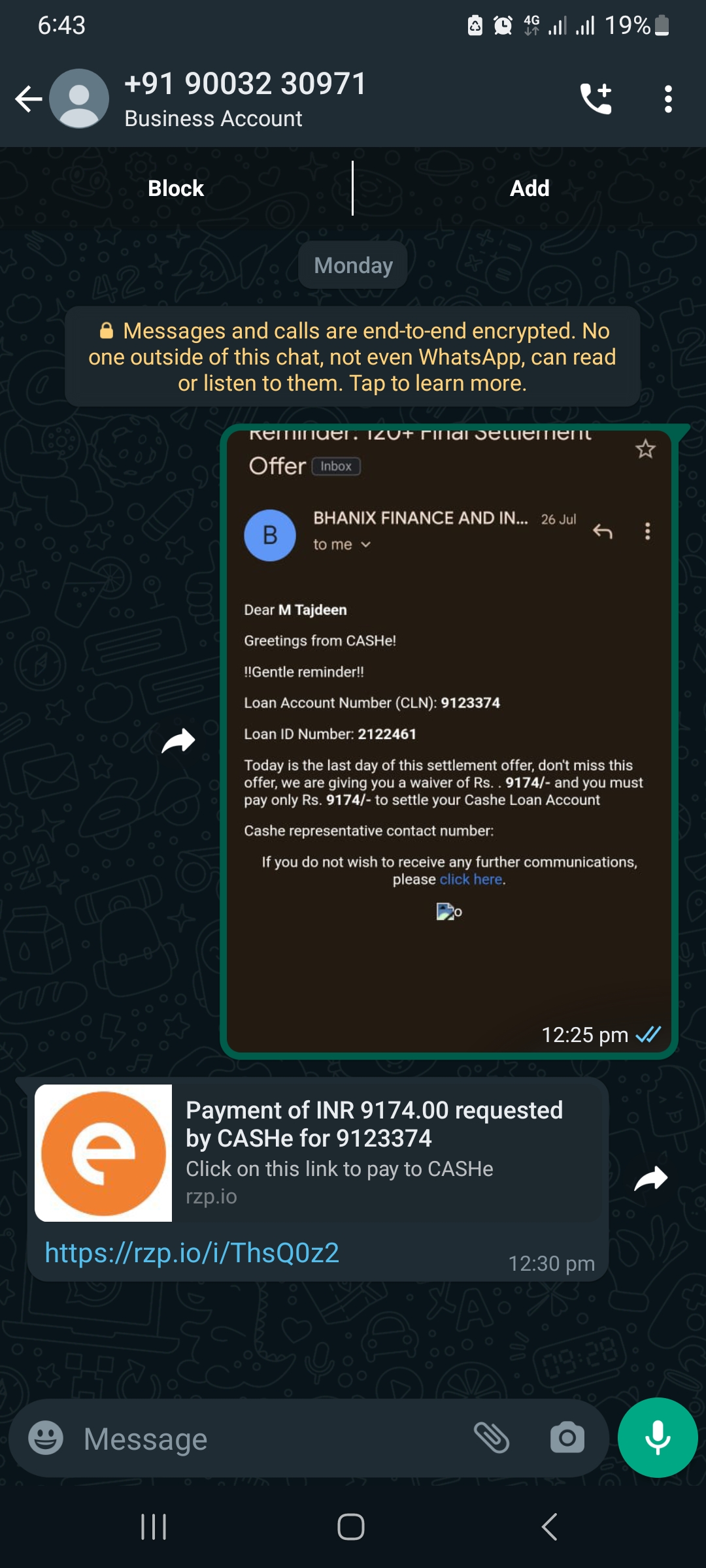 I, Tajdeen, wish to file a complaint against Cashe for an unresolved loan settlement (Loan ID – CLN #999990009123374). Despite paying the agreed settlement amount of 9174 on August 7, 2023, my loan shows as outstanding.Additionally, Cashe’s debt collection team contacted my payroll officer without my consent, leading to job loss.I seek your intervention for loan closure, issuance of a No Objection Certificate (NOC), and an investigation into Cashe’s conduct.