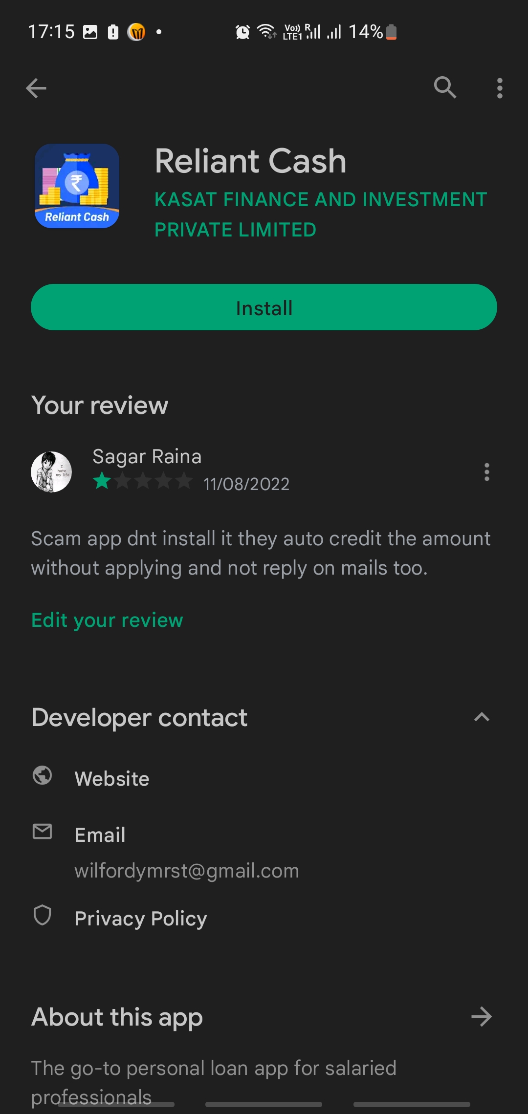 Hi there is app called reliant cash i applied for loan in that app and repaid the loan within the due date but after repayment this app credited money in my account without any application of loan please help me