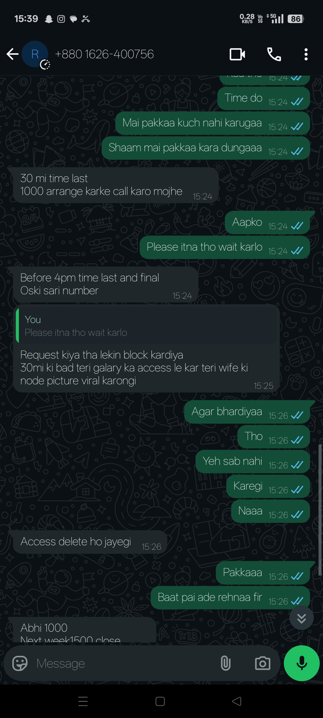 She is telling me that shee will access my gallary and she will viral my wife image and she make my nudity image with another girl and she is telling me that she will viral everything to my contacts and in social media