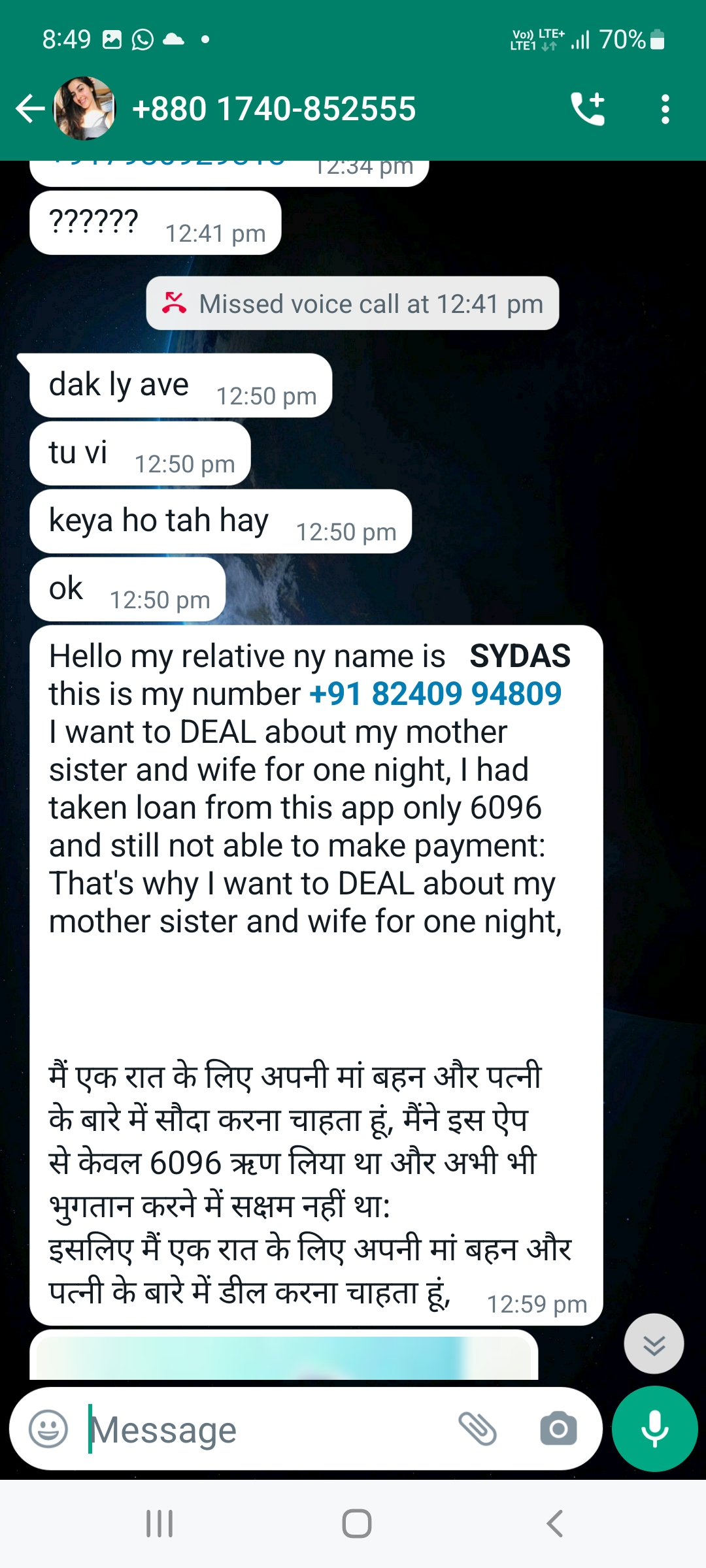 They themselves voluntarily deposited in my account. Calling me & my contact no’s speaking in bad words, sending porn photos with my fsce attached with it & sending it to me & to my contact numbers. Requesting to please help me in this. Please take severe action against these frauds. Thanks for your support time & consideration.