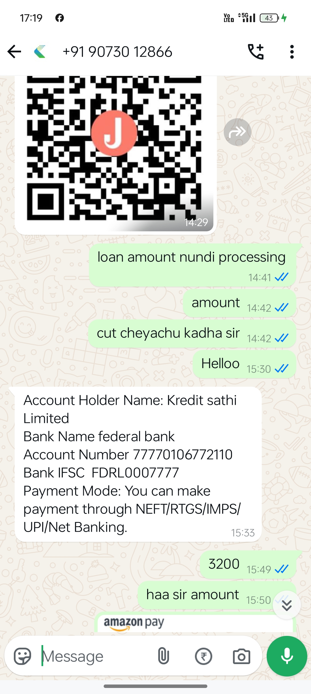 asking payment of 3200 rs for processing fee for the disbursal of loan amount 50k