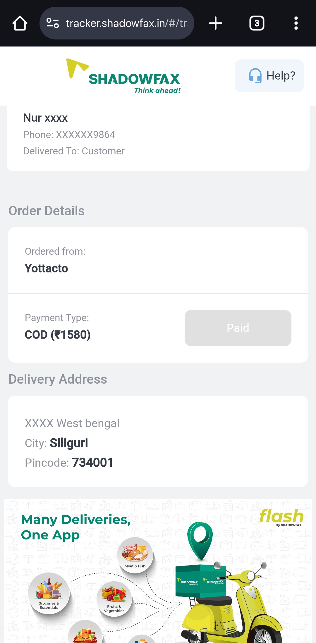 I Have orded a pcs of suit from meshoo but they delivered the wrong parcel and took my 1580 the parcel was delivered by shadowfax by tracking id no SF2001905973YOT