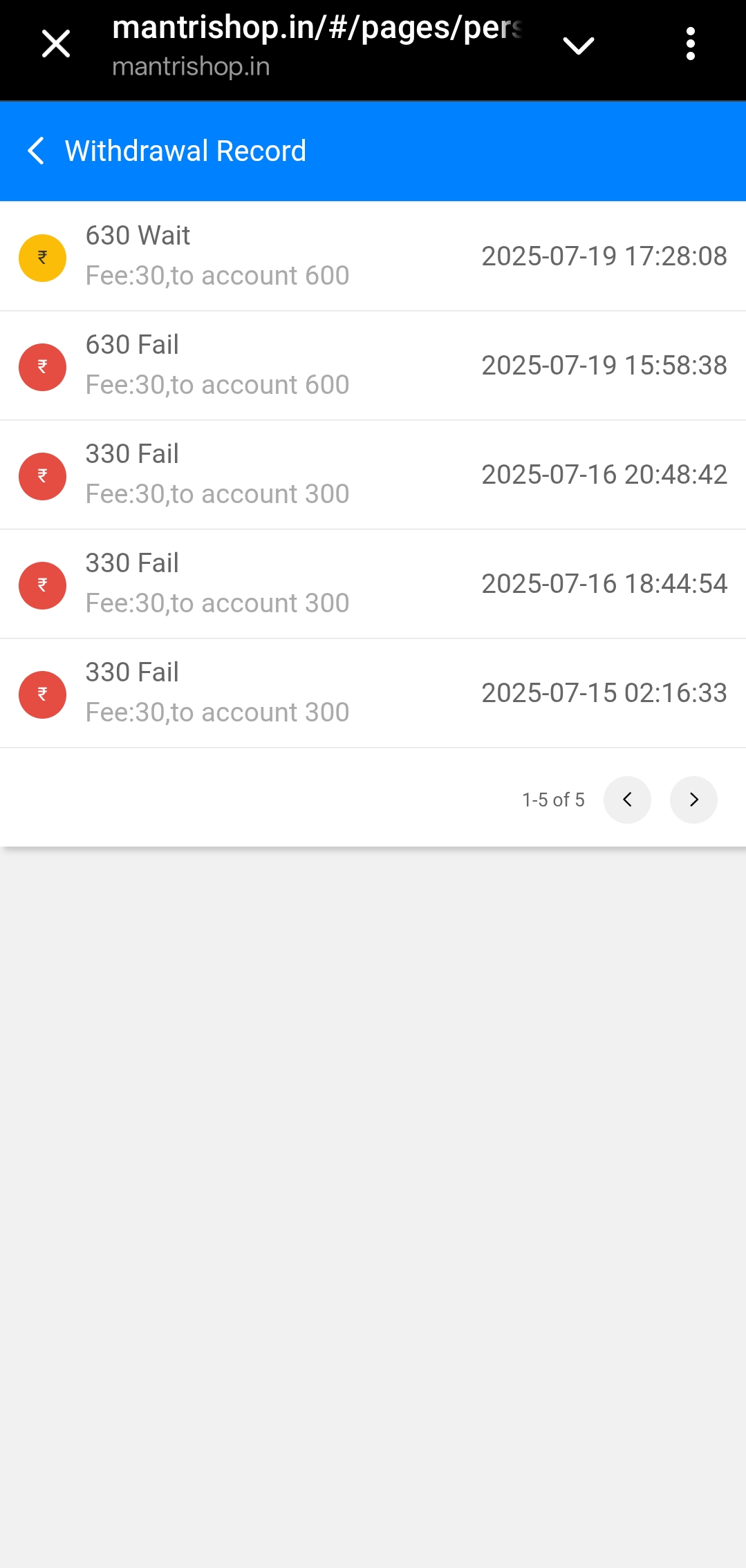Mera withdrawal bar bar failed ho ja rha hain mantrimall game me