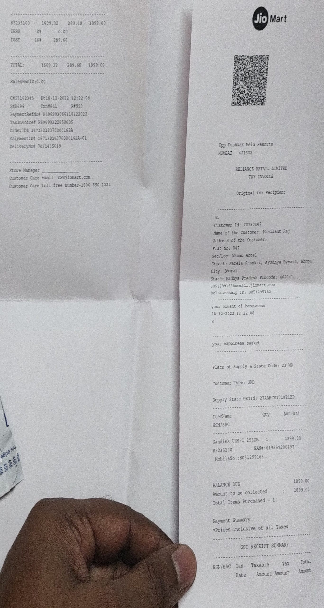 Due to high quality Video, size is greater then 150mb. So I am unable to upload the video when registering the complaint. I only upload the photos of what I receive. After talking from customer service on 7 January, they said “upload video on e-mail on ‘CS@JIOMART.COM’, so I have uploaded it on mail after reducing the file size around 100 mb. But due to greater size it was not delivered. Then I also try another day to send the video but I get the same return. Then I again call them, then he says reduce the video size less 5mb and then upload it. So I have upload it on 12 Jan.