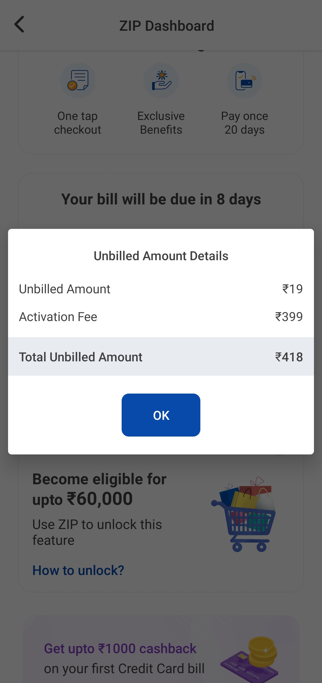 I was made a payment of 19 rupees recharge but after recharge show 399 rs zip activation fees. But application term and condition says only 99rs zip activation fees. Please solve the problem and provide me my money back. Thanks 👍