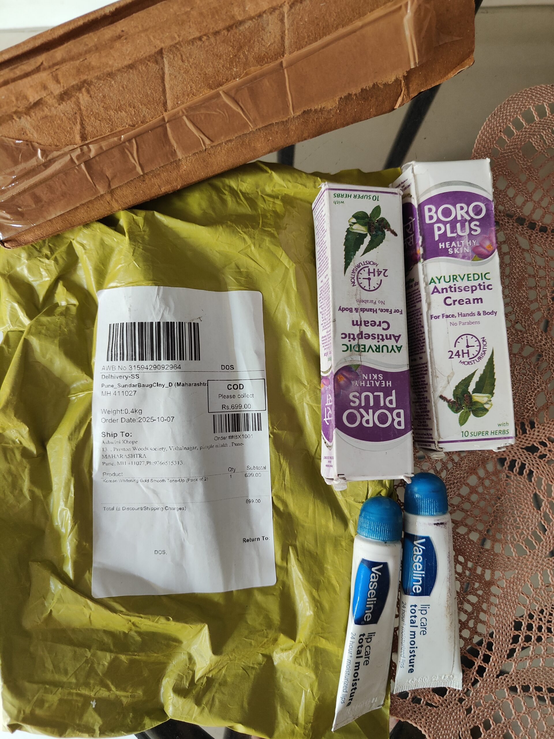 The parcel only contained a Vaseline lip balm and Boroplus cream. I did not place this order myself.