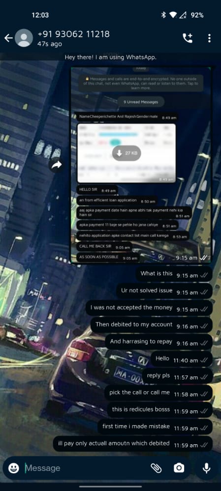 Effiecient app auto debited 12000 to my account and not asking me to pay 22000 in return, and abusing and accessed my contacts number