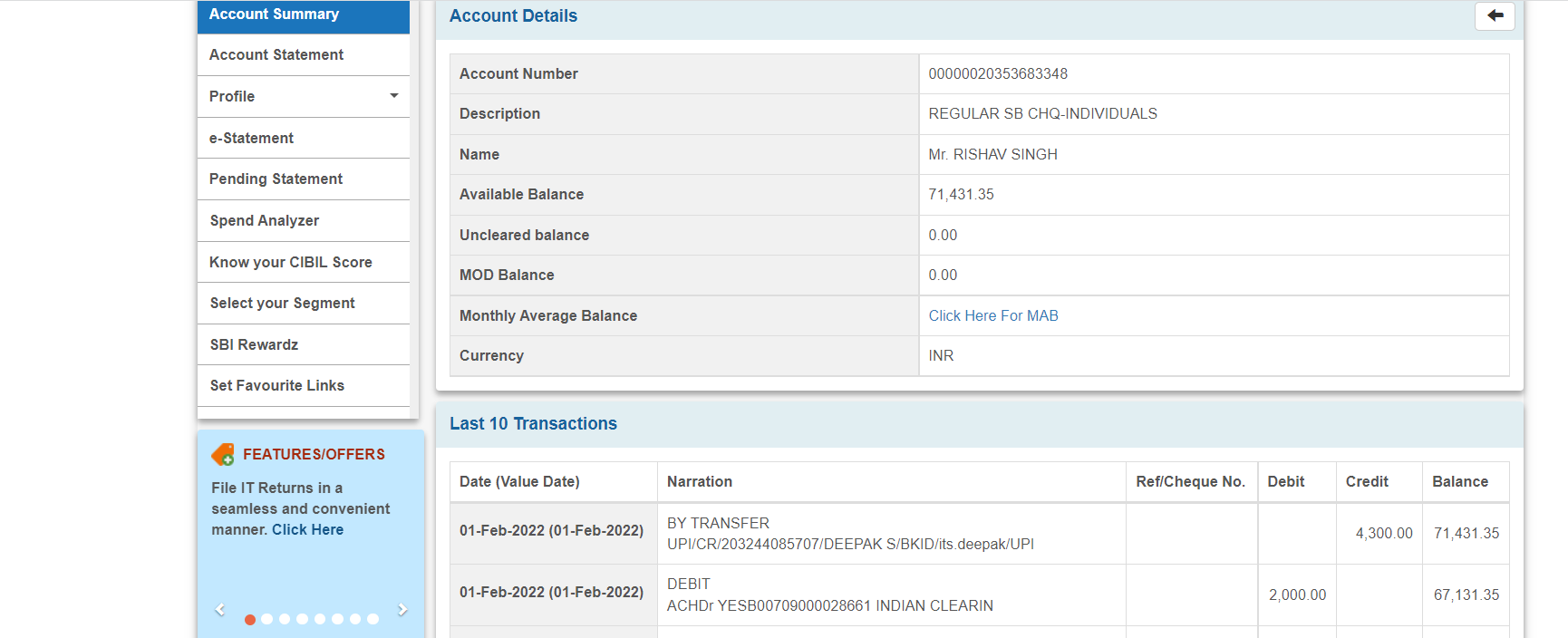 On 1st February 2022 INR 2000 was debited from my SBI account automatically with the following message DEBIT ACHDr YESB00709000028661 INDIAN CLEARIN.kindly hekp me.