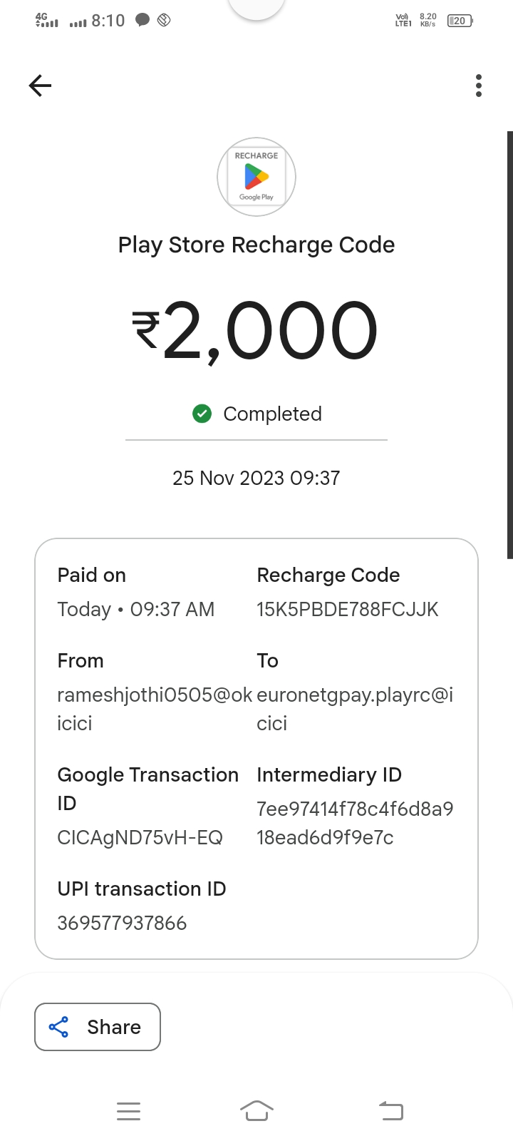 Money debited by Google pay from my account for play store recharge three times Rs 400,Rs1600,Rs2000.totally Rs4000 debited.I am not recharge for any play store but amount was debited.give me refund .