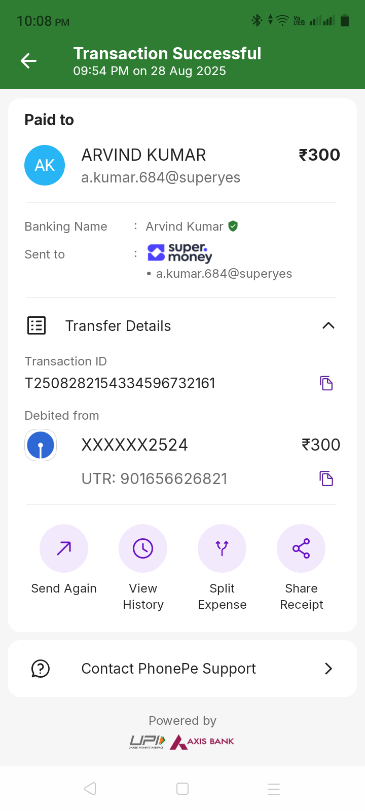 I have made a deposit on 28/8/2025 9:54pm ist on parimatch. Money deducted from my bank but not credited in parimatch account