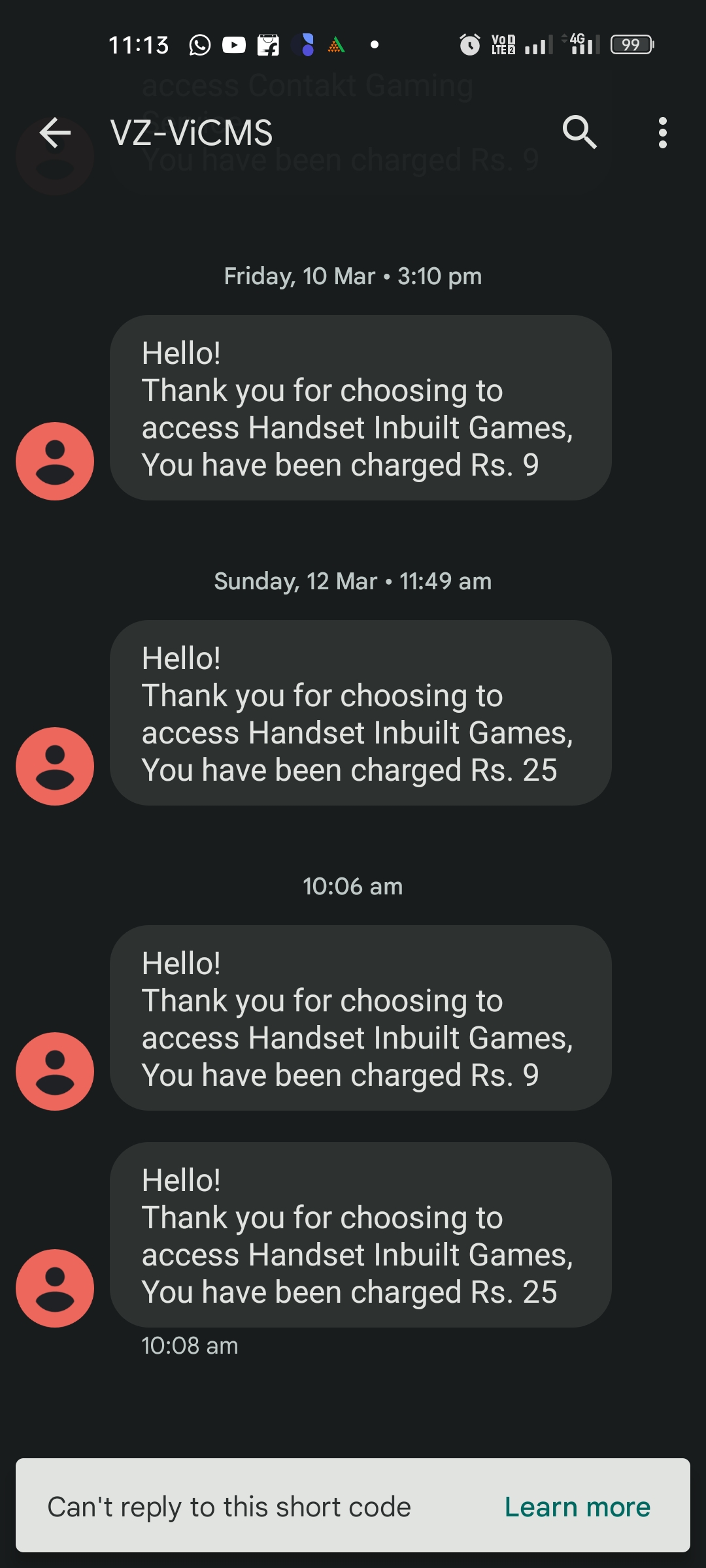Multiple times money has been deducted from my account for services which I have not subscribed to. Evry two days once or in a month’s gap this is occurring. The message I received is as below –