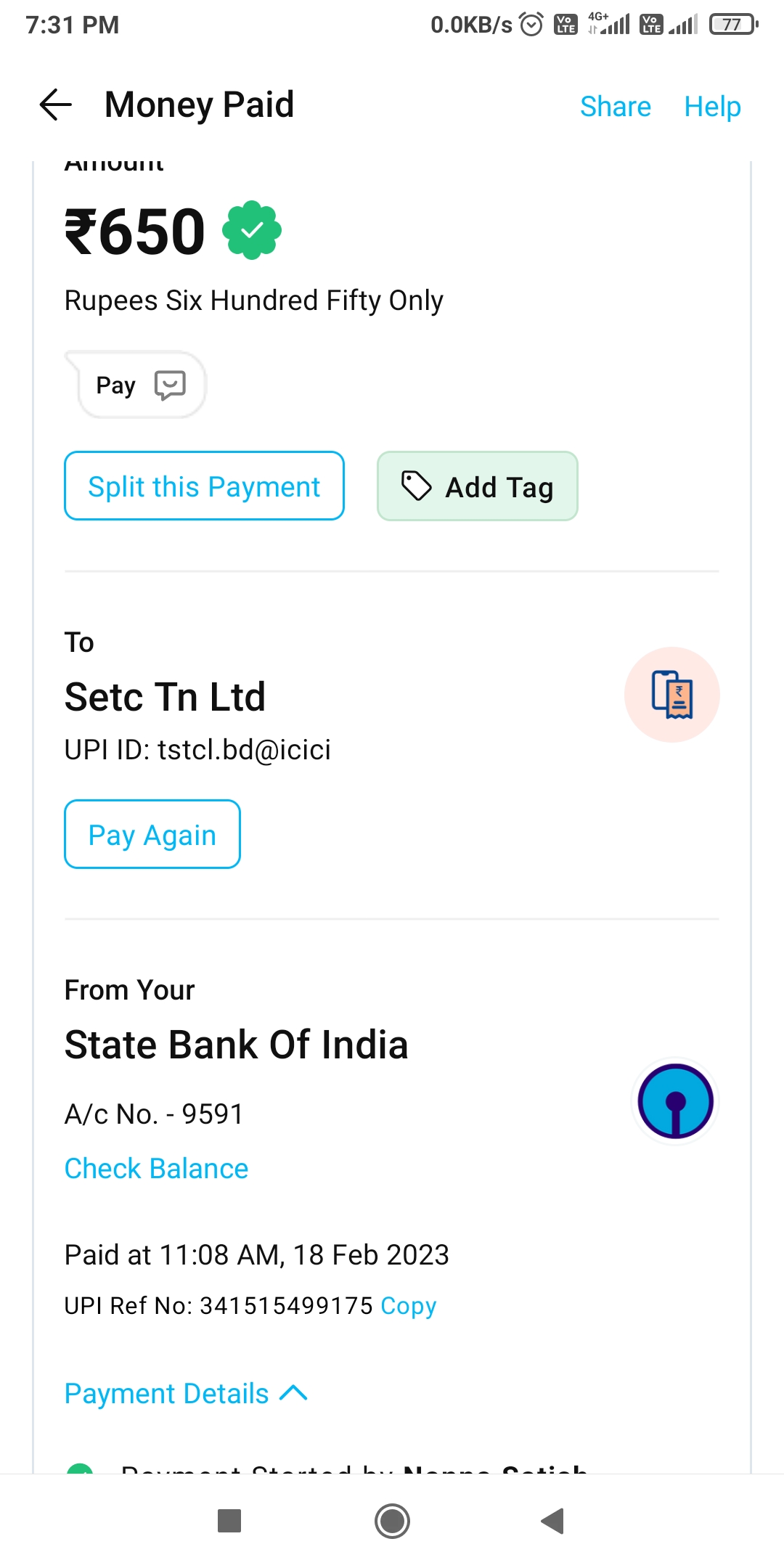 Paid to- tstcl.bd@icici