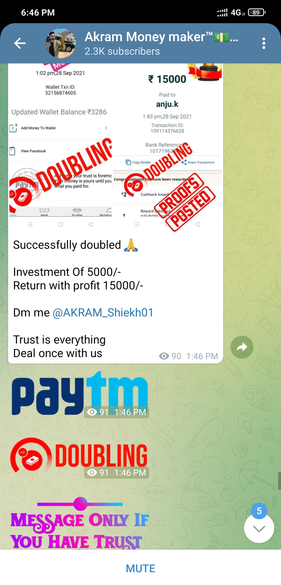 i was added to a group called akram money maker .. and they provided many videos of people posting saying that the page is trust worthy in doubling money .. but i deposited / transferred rs 2000 , to the said account akram786money@apl . after that he said in 45 minutes you will get the double payment .. but a few minutes later he said the offer is over & your money cannot be returned …