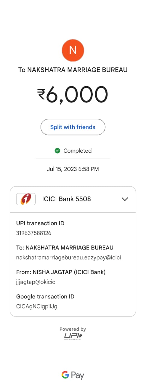 I thought That, we had finally found the right Girl. So we agreed and paid 6000/- through UPI id which Amruta gave me.