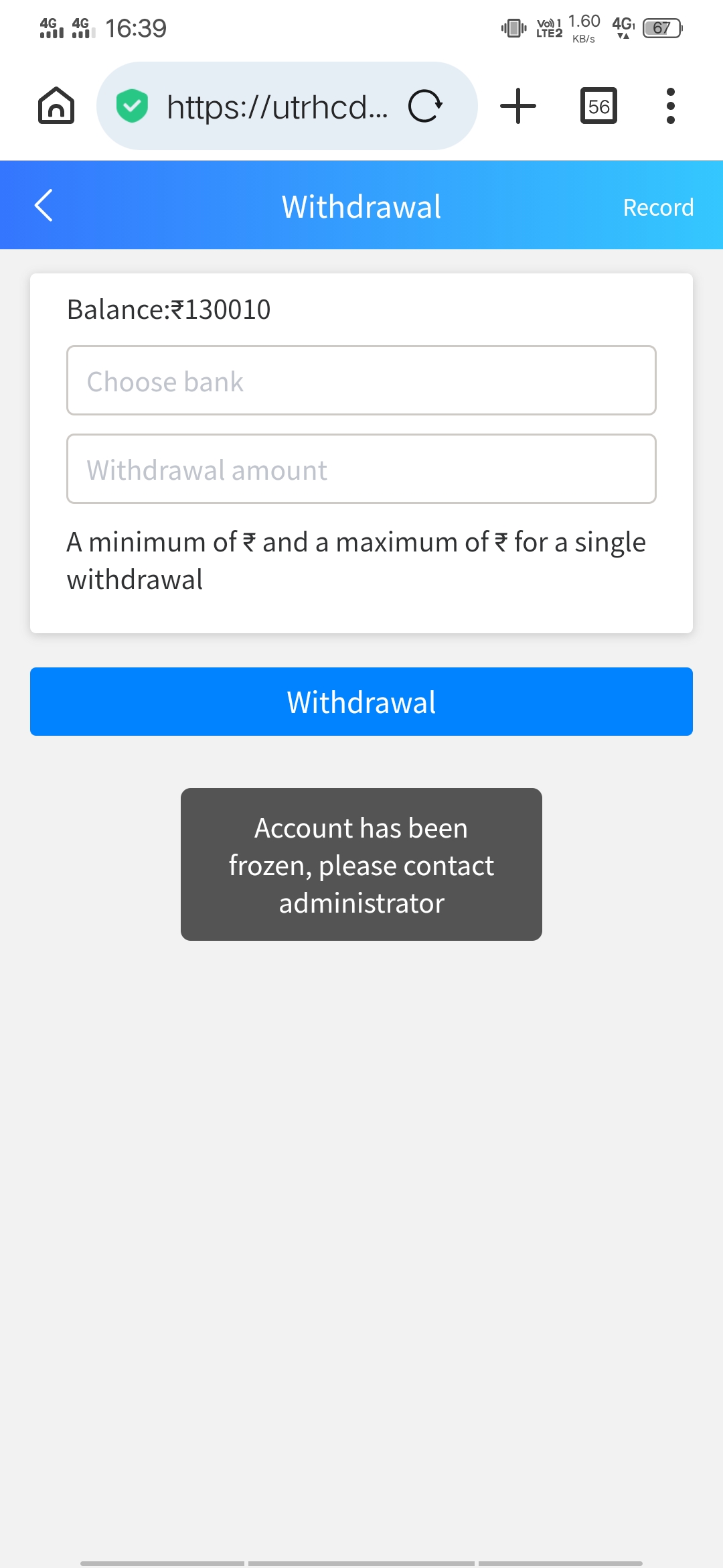 Daily task was given to me and after that one task was about trading… I invest 1000 they gave 1410 then again 3000 after that the trade amount of 8000 they said buy BTS/USDT and i mistakenly buy BTC to for that recovery i paid 28000 and then 58000 and total amount goes upto 132010 and withdrawal was in three step bht after withdrawal of 2000 they freeze my account and saying have to pay 100%of remaining Amount then we will unfreez the account.. I lost my 13010 rupees which i borrowed from friends and family do justice to me