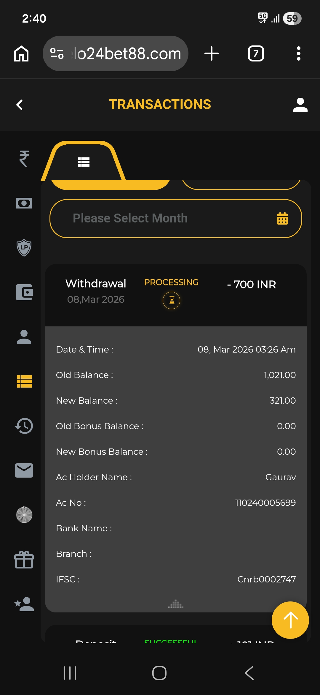 Money not credited in my account