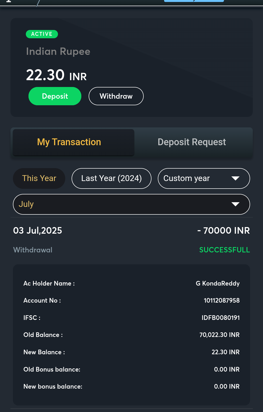 I withdrawal amount 70000 rupees on funinexchange website. I didn’t recieve my money on bank account. Website claimed successfully withdrawal. Withdrawal not received from Funinexchange was last modified: July 03 2025 by Consumer Court