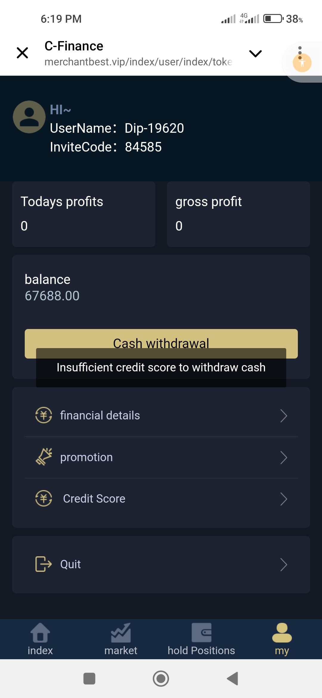 Upwork company scammer said credit score 10% not fill up.90% credit score only.10% credit score fill up then 39000 money deposit then I can withdraw the money.Plz help me.
