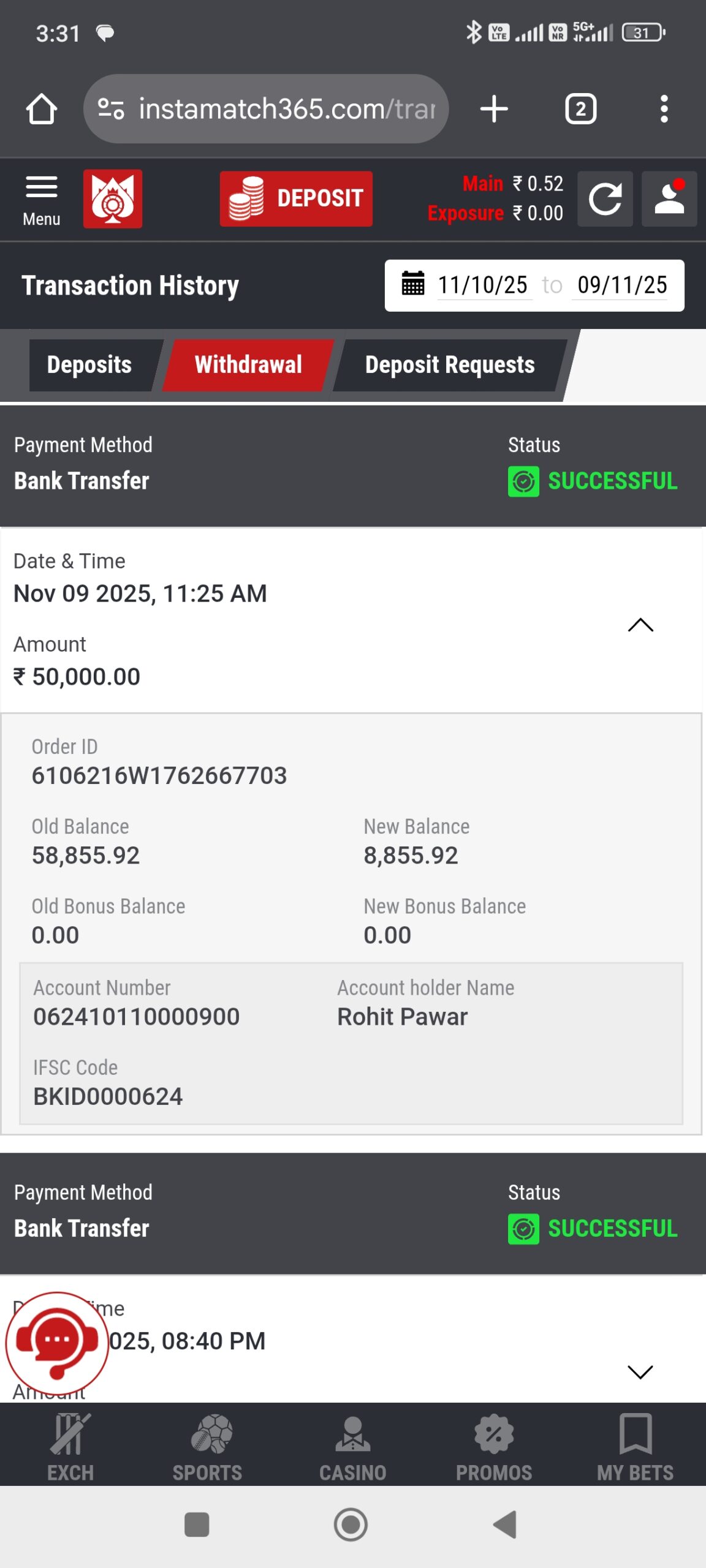 I withdraw 50000rs and 10620 rs bothe withdrawal showing successful but amount not credited in my bank account.