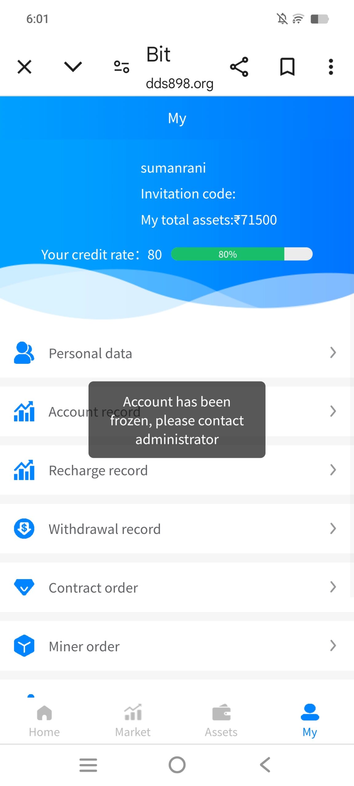 Google site dds898.org have my id , I paid 71 thousand rupees , now my account was frozen , my username was SumanRani , now please unfreeze my account and give cashback to me please