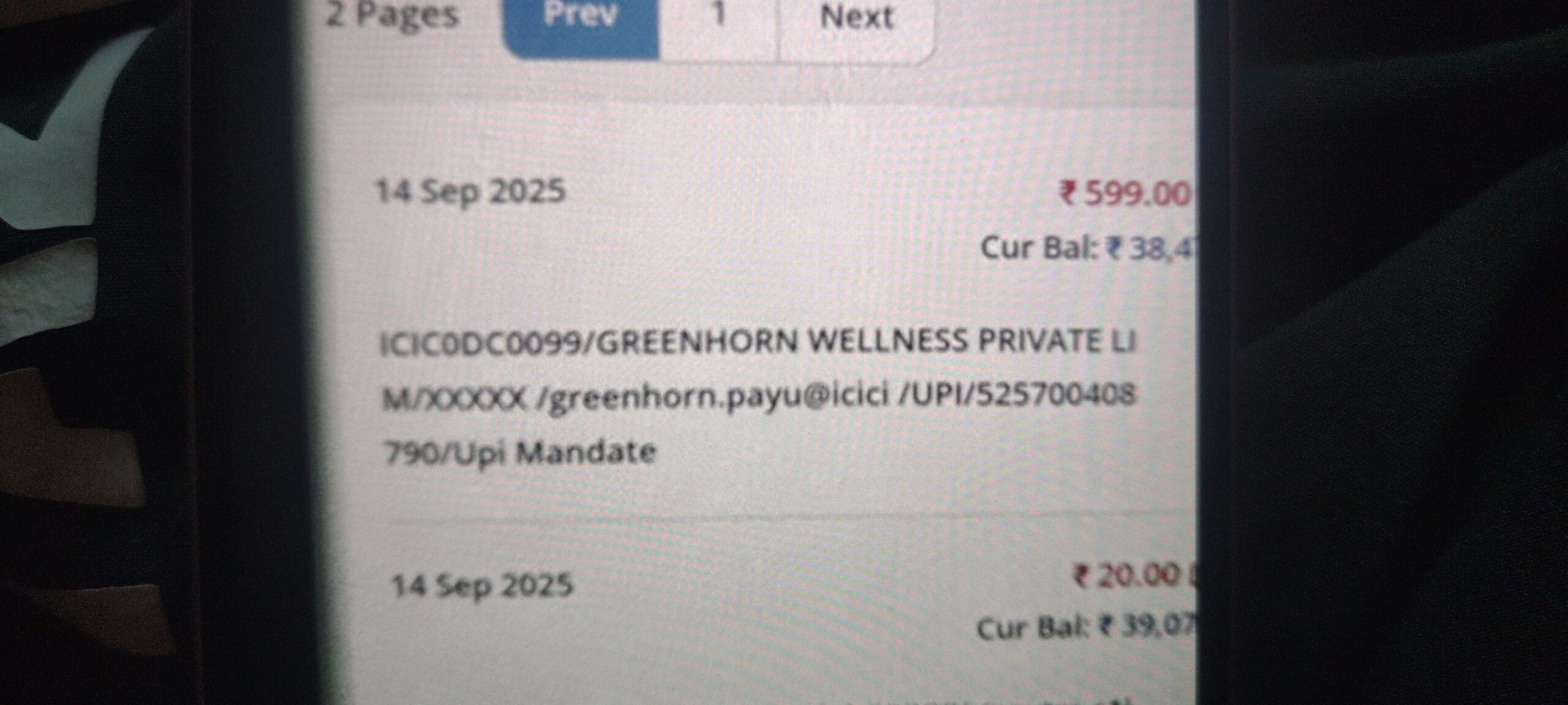 I say that sadanly my accounts meney was dabit from GREENHORN WELLNESS PRIVATE LIMITED,, UPI NO – 525700408790