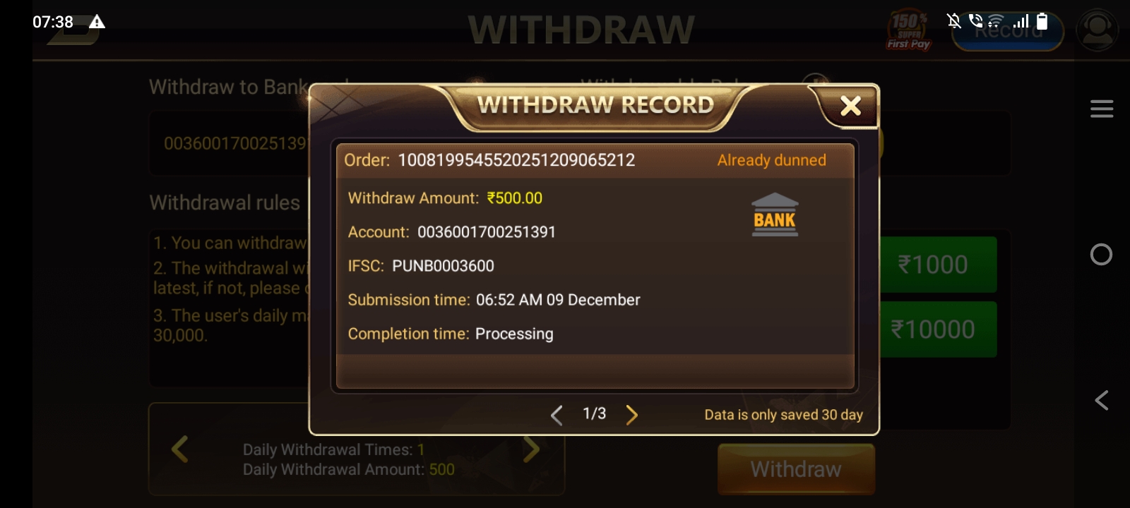 Namaste app se meri withdrawal already dunned krdi hai lekin paise nahi ayee