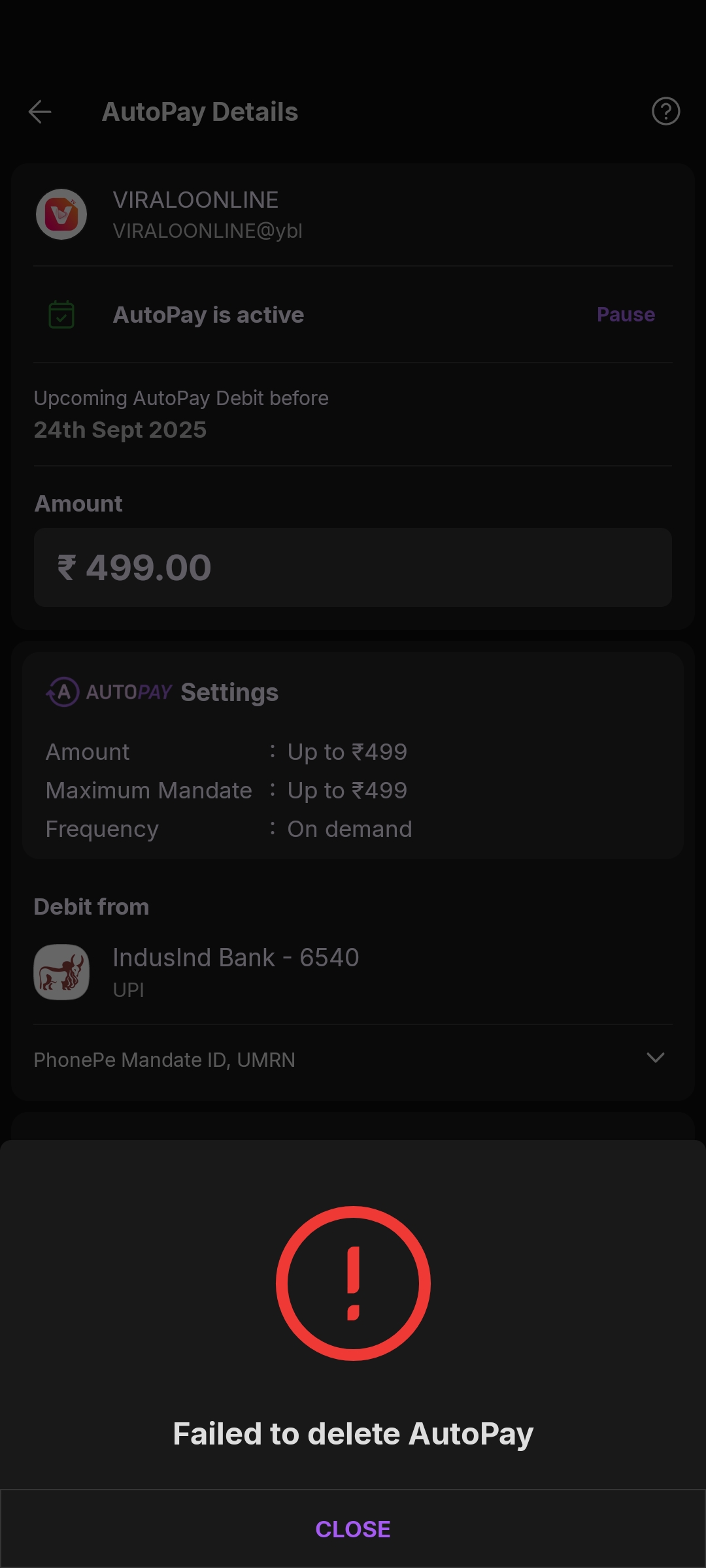 Please my auto pay delete