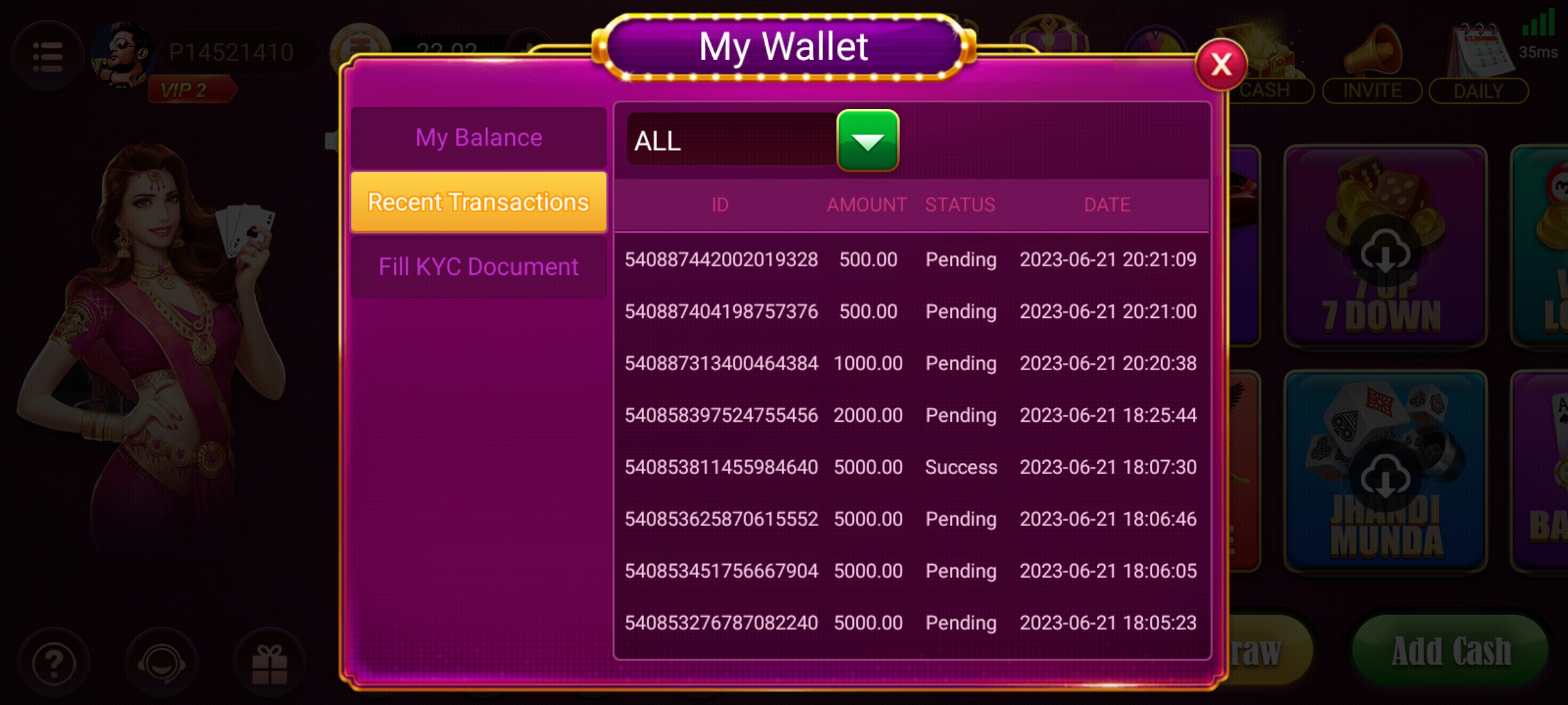 Hello sir me 2000rupes game aad but my cash is panding please help