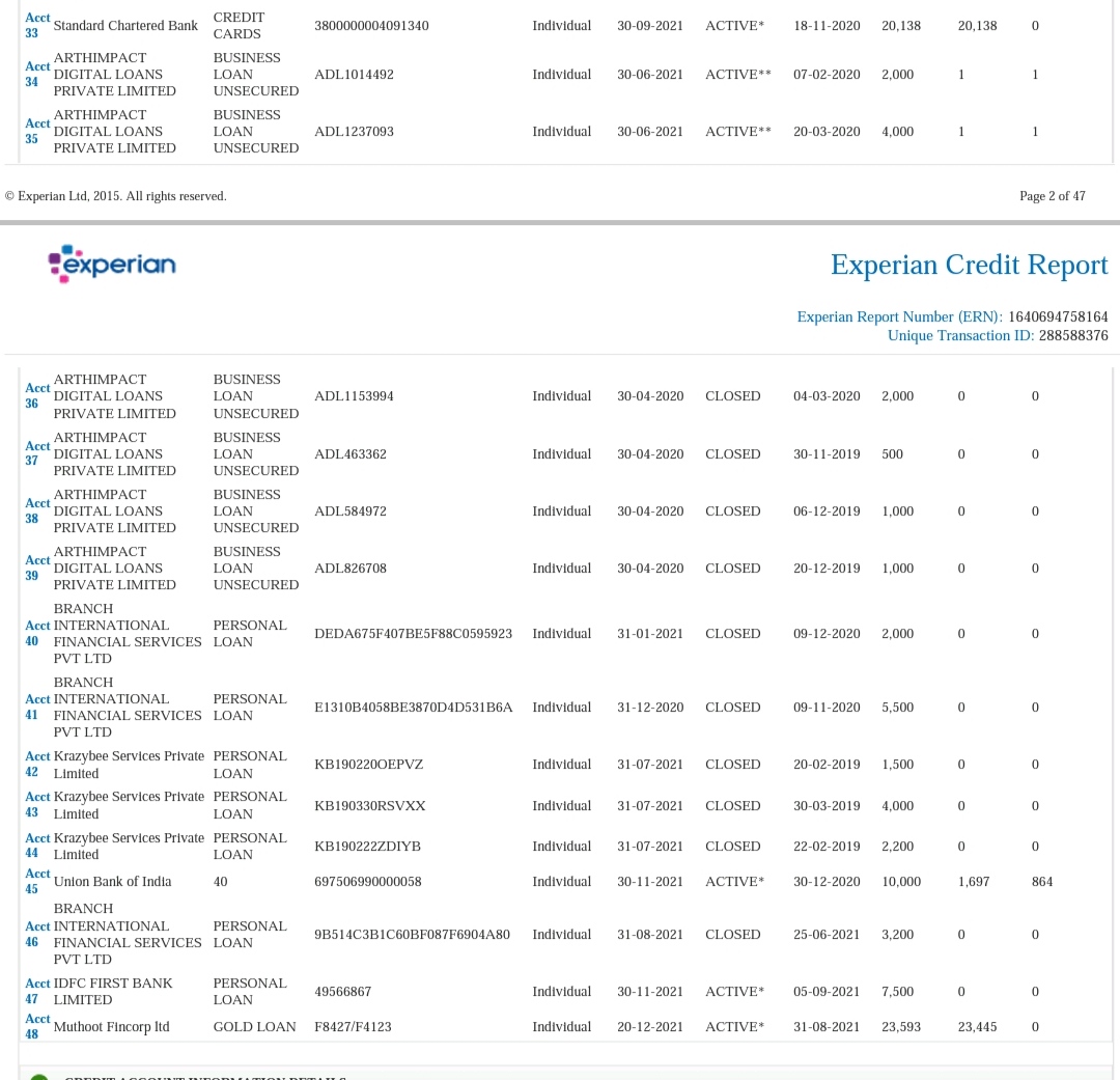 My cibil history showing 2 active loans of Rs.2000rs & 4000rs Each from ARTHIMPACT DIGITAL LOANS PRIVATE LIMITED. I haven’t taken any loans from this company, but it is showing in my credit and making my cibil score bad. Please provide solutions.