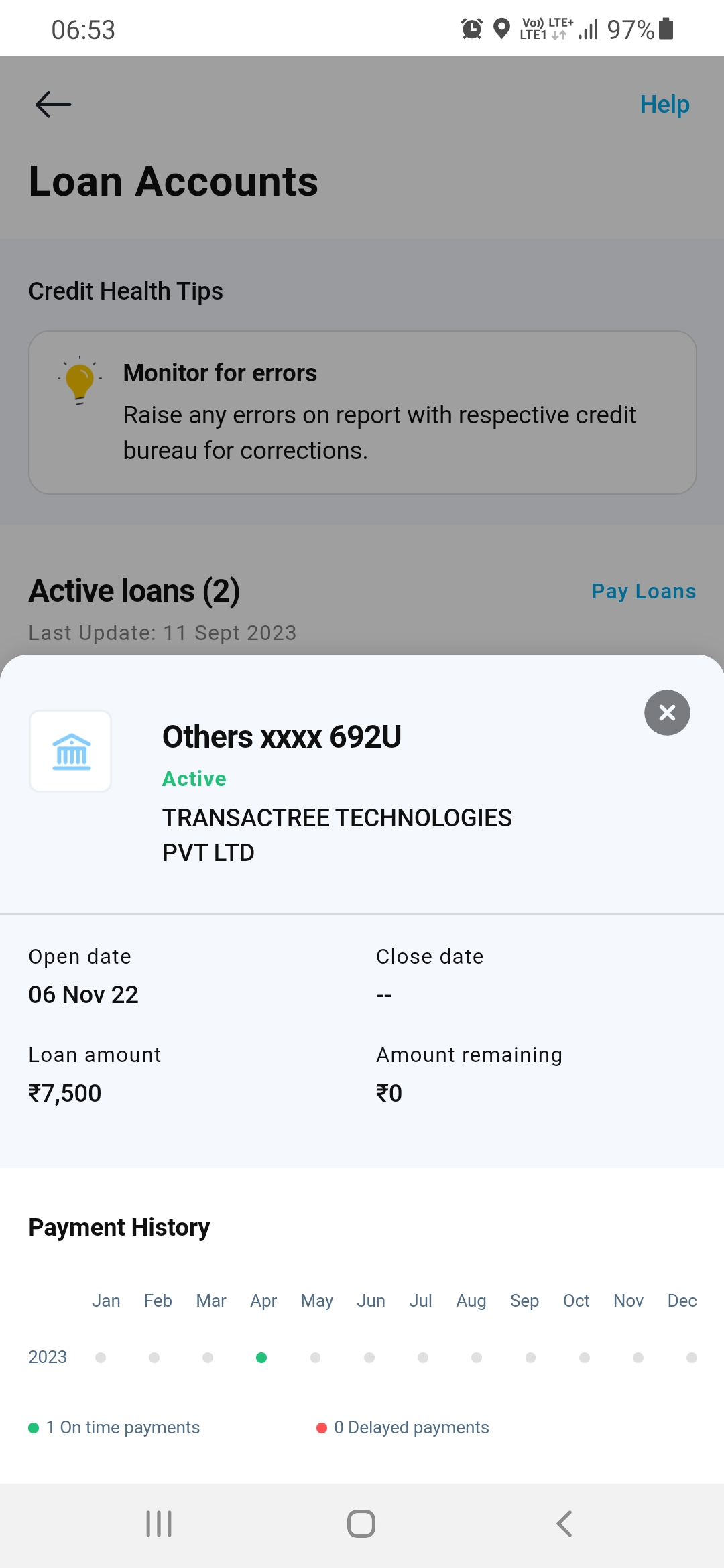 Dear Sir, I have checked my CIBIL Score its fake loan TRANSACTREE TECHNOLOGIES PVT LTD. I have not applied for any loan in this company but it showing so iam request to close this loan slove this problem.