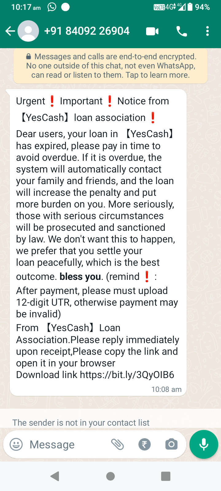 I am not giving any loan of yesh cash and he sent me message for pay your loan and he harshment for me he is say i was to your family and friends and abuse word and relative to slove my problem