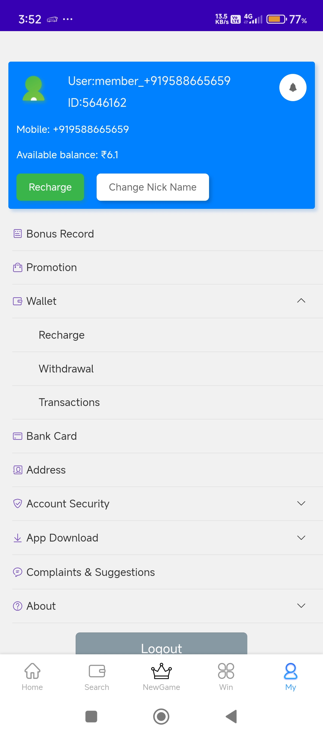 On 17/04/25 morning i recharge 300 two times but my money is not deposited on my mantri game