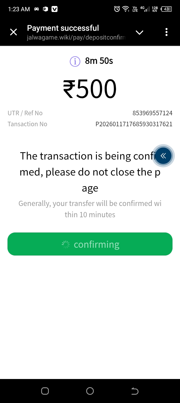 My deposit not received my game id