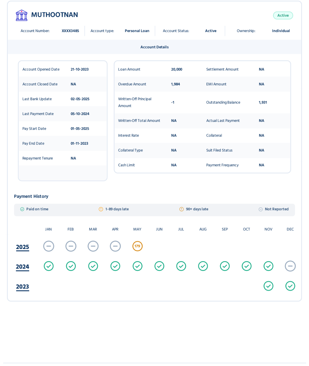 my loan account number [PLFLD073485 Muthootnan Finance ] Personal Loan