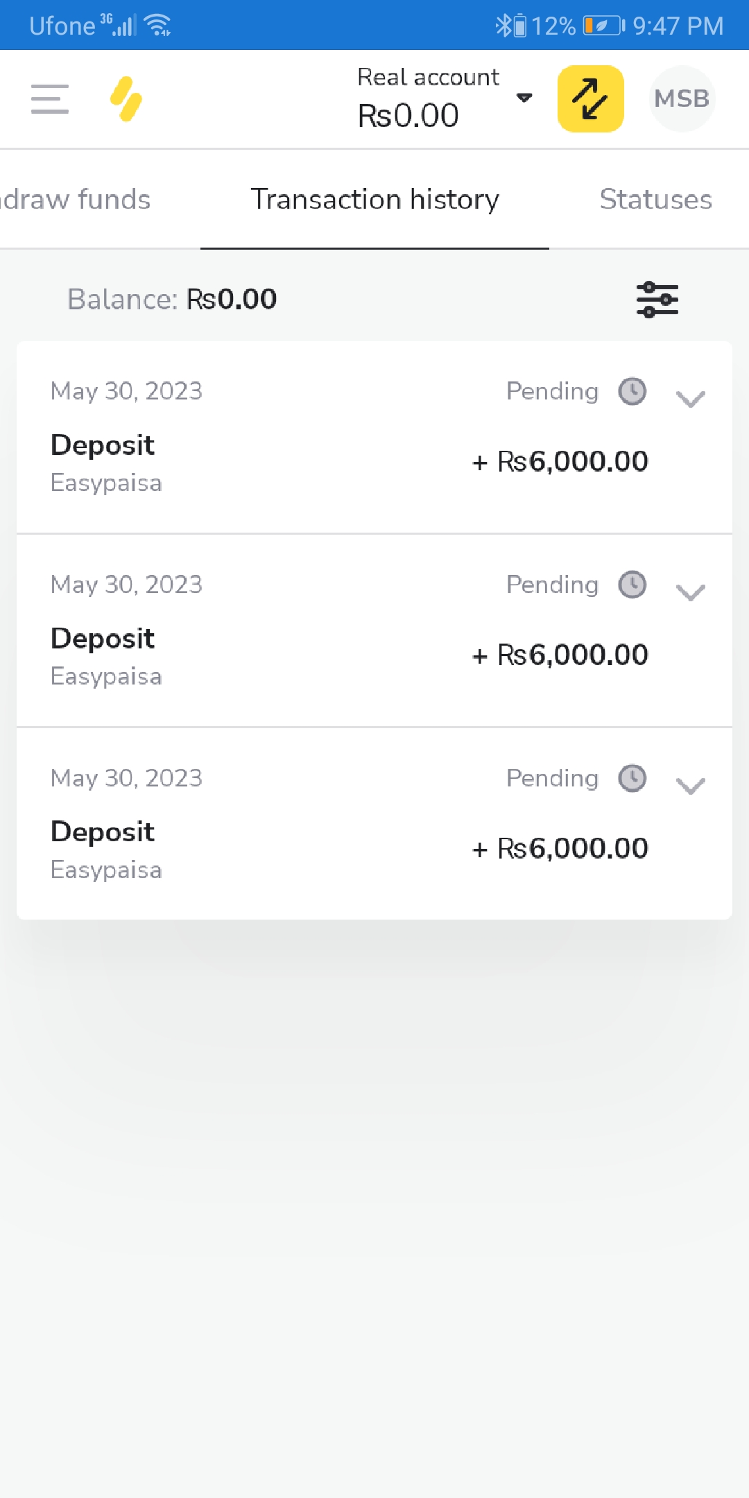 I have deposited 6000 rupees and it said to me that it will take about 24 hours.but it is 48 hours now but it is not yet deposited. Hello! My transaction via Easypaisa is being processed for more than 1 day(s). Please help!