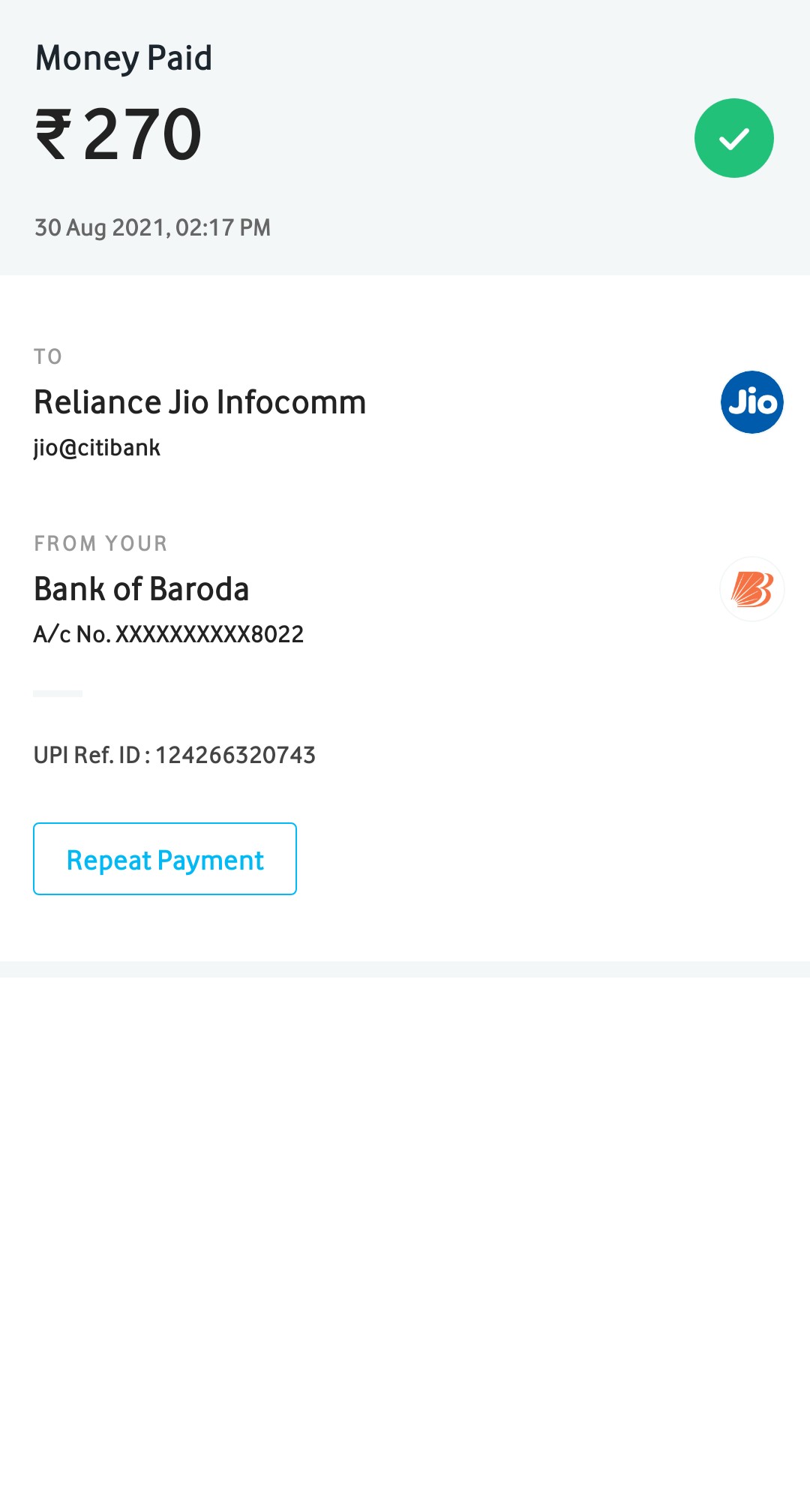 Today on 2:17 pm my 270 rupees is transferred to your citi bank by mistake