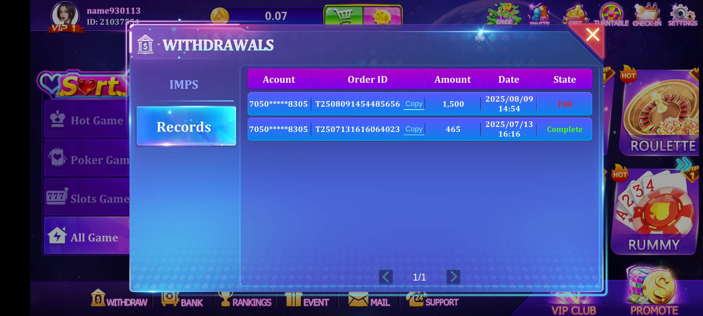 Maine 1500 withdrawal lagaya tha magar failed ho gaya aur abhi voh 1500 mere game id me return nahi diya 5 din hogayaa