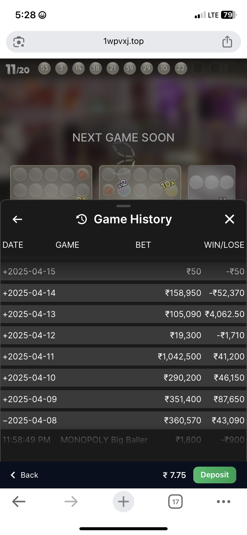 game Monopoly and lost 52370 rupees.