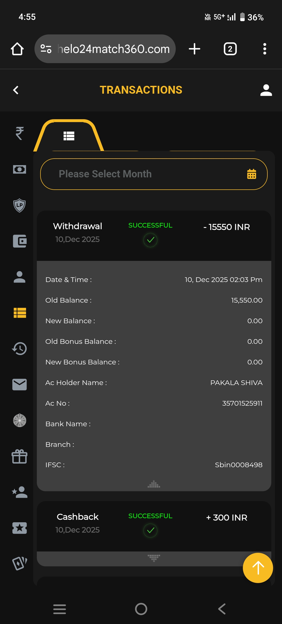 My money credited but not received my account