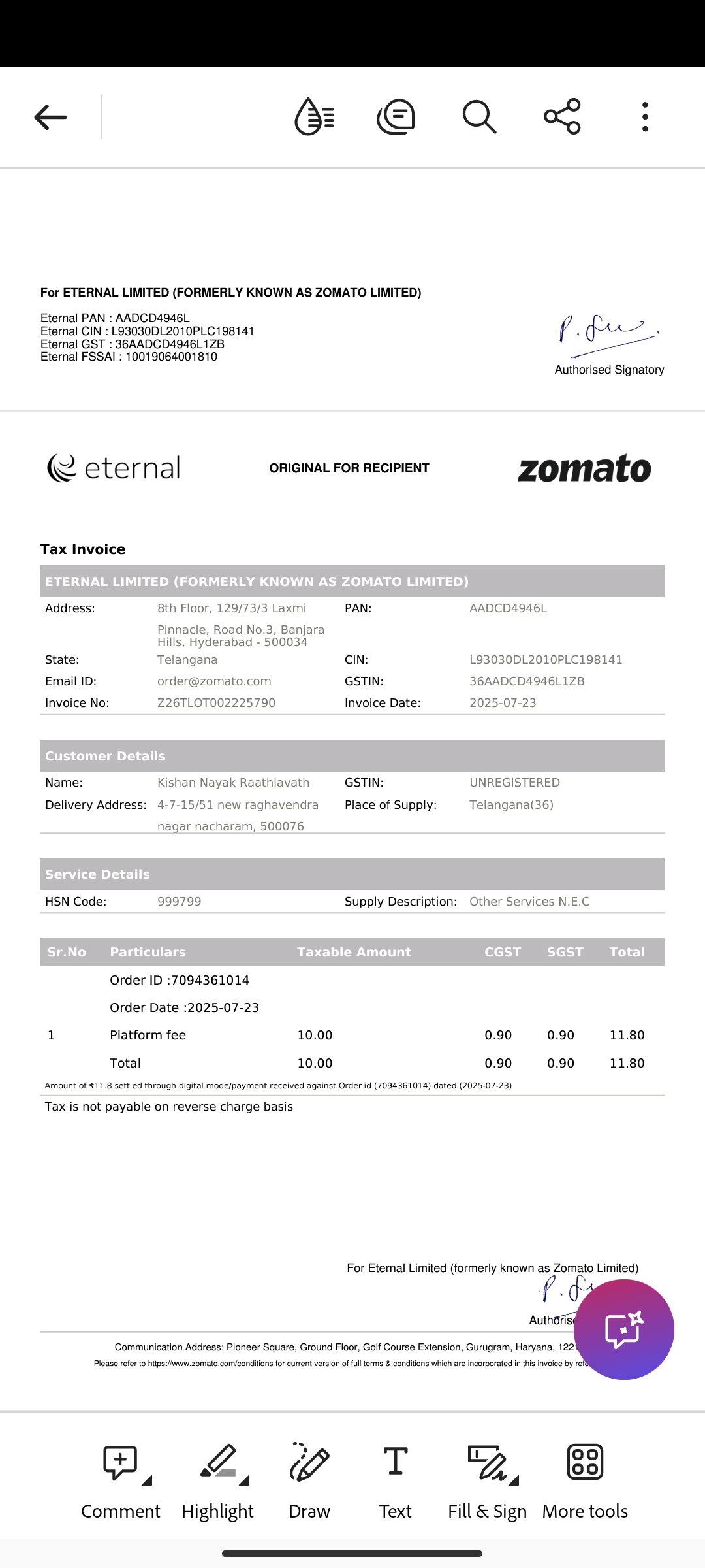 I ordered food on 23/07/2026 from one of the restaurant Raju gare biryani from zomato app and the order prepared and sent by delivery agent but he did not Delivered my order but he updated as Delivered I tried to call him but he did not respond after that I registered a complaint to zomato by email but no body replied to my mails