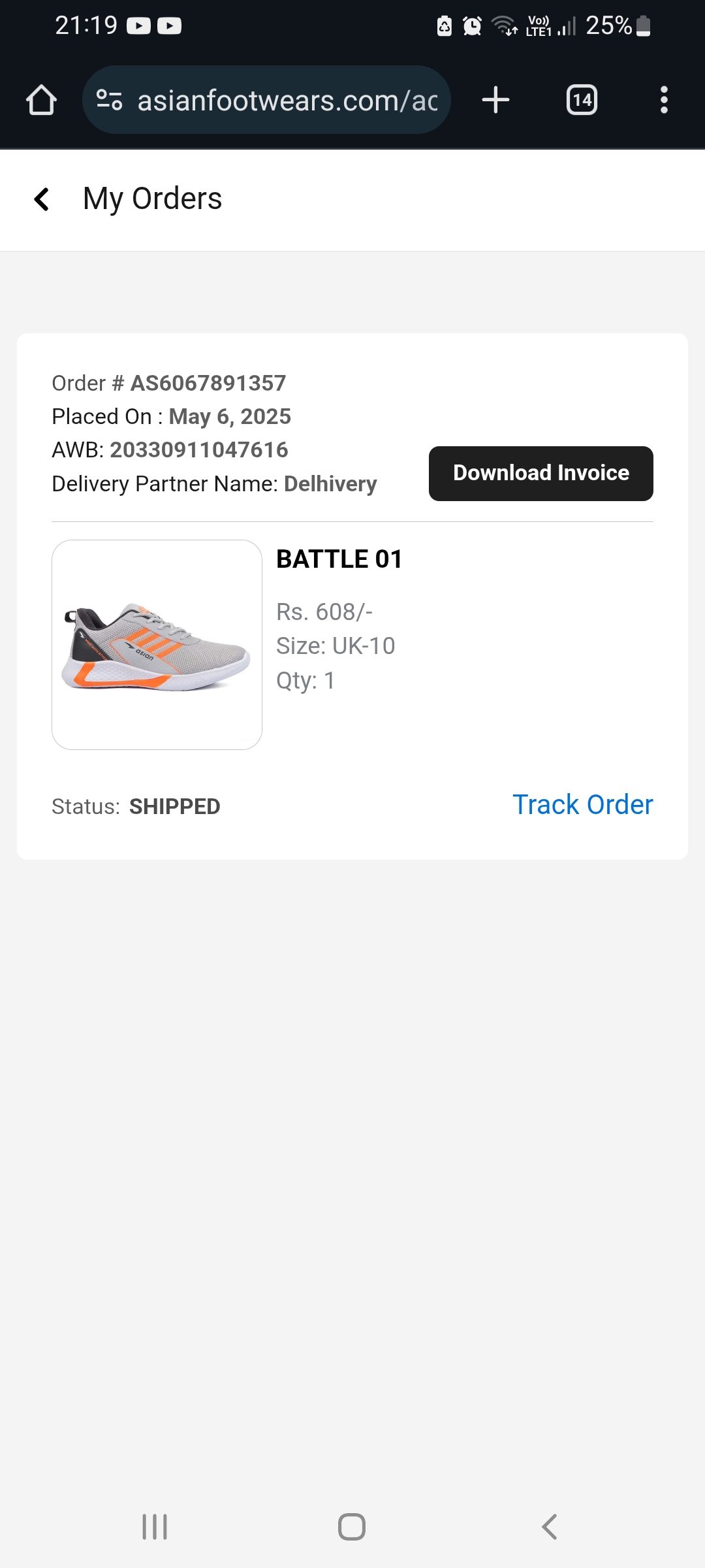 I ordered shoes from asian footwear. I have paid full amount by Paytm but my order was not delivered yet.