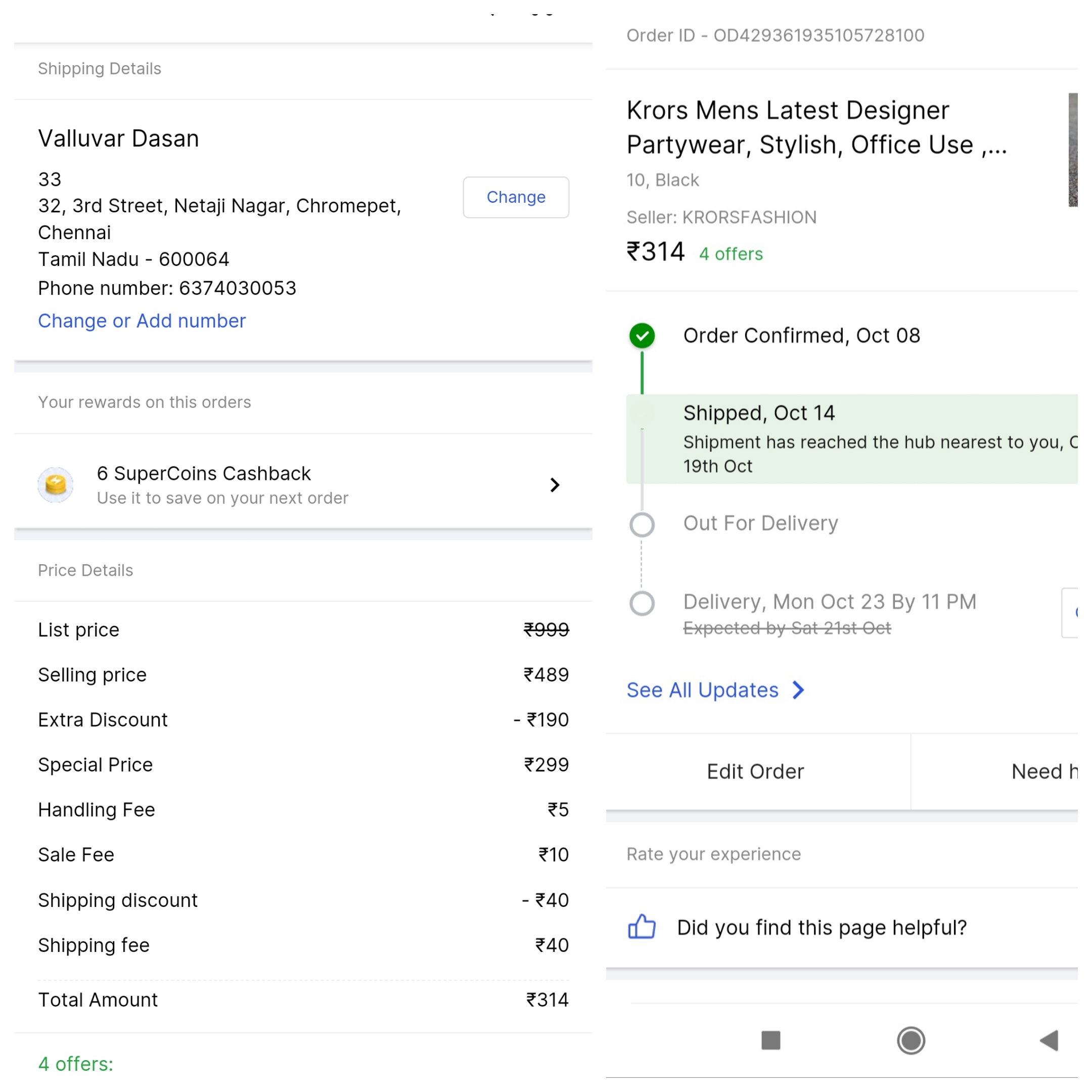 I ordered a shoe on Flipkart on 08.10.2023 and it was supposed to arrive on 21.10.2023. But till now my order has not arrived. The answer has not come till now. Please let me know when my order will arrive.