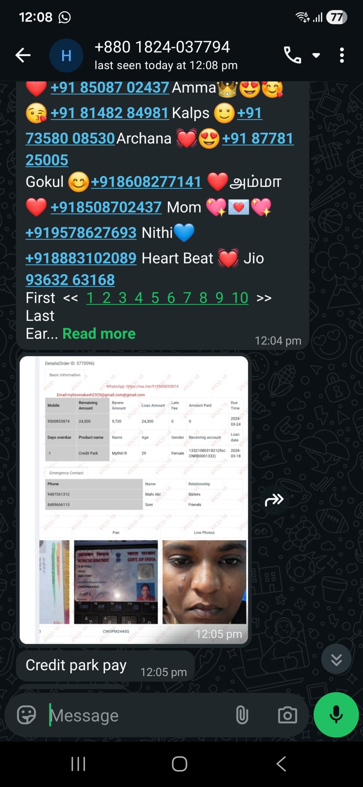 Fake employee call and chat many times and personal data take and terding me my family members WhatsApp my nudes photo send