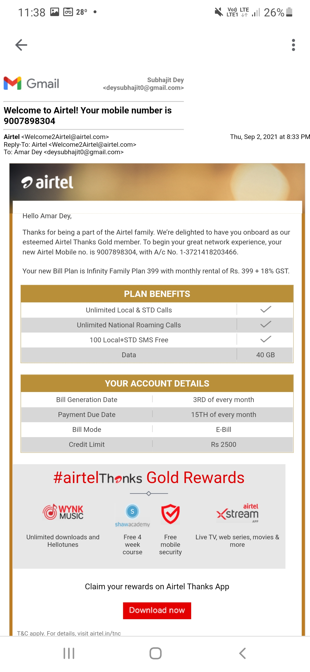My name is Subhajit Dey from Bankura District, West bengal. I want to inform you that my personal email ID is misused by your airtel customer connection and I don’t know him and don’t know the number 9007898304. He said this number taken from airtel store.But is it possible two mail id is same for different person?I am not a airtel customer. When that connection is started that time mail me from airtel and today also mail about 50% data usage alert.