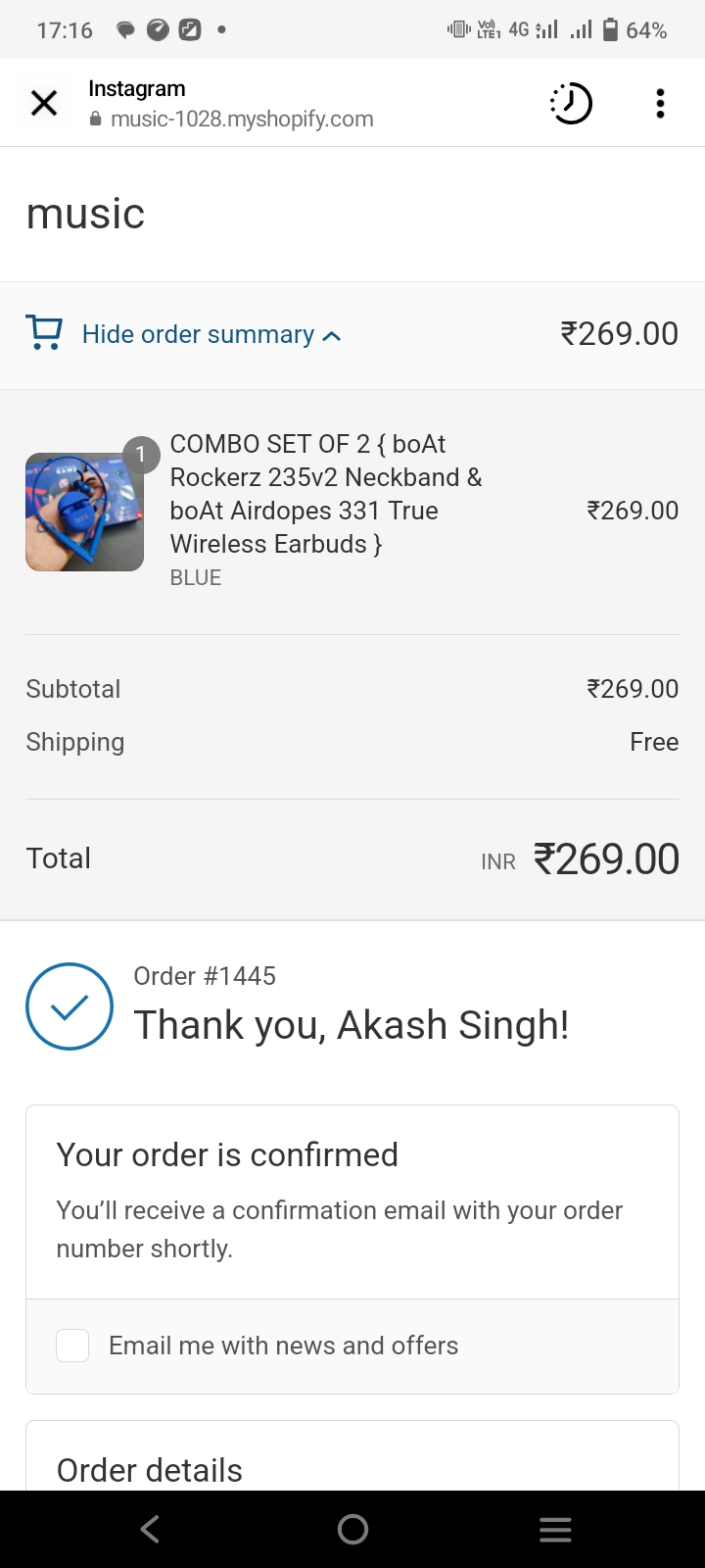 Maine 21 Tarik ko boat ka blutooth order online kiya tha aur rupees bhi online 269 diye the lekin mera product abhi tak nahi aaya h