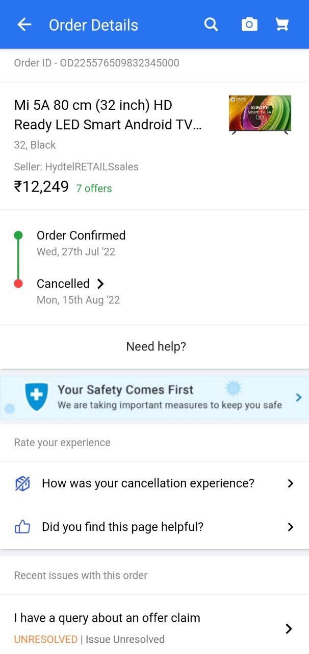 TILL AUGUST 23 MY PROBLEM NOT SOLVED IN FLIPKART SIDE EVRYONE TELLING PLEASE WAIT 24 HOURS TO 48 HOURS BUT I AM WAITING FOR 8 DAYS .